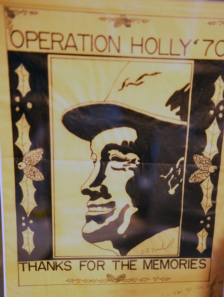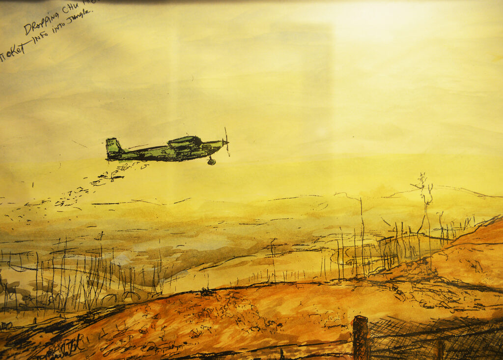 As soon as he arrived at the base, he was told that Bob Hope would be there for a Christmas show in two weeks, but the base had not done any posters or publicity for the event. His first piece of art in Vietnam was a flyer with Hope’s profile on the front.