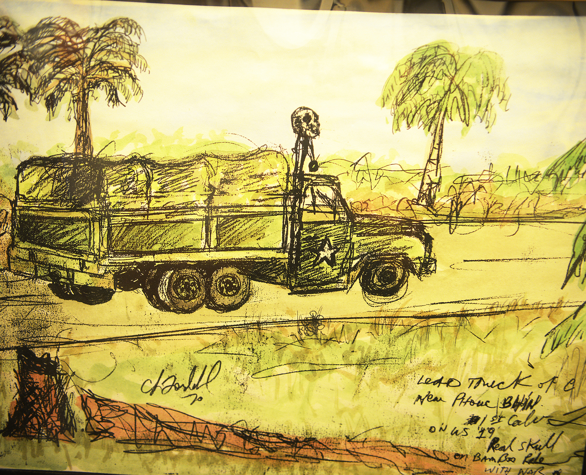 During that time, he completed 131 sketches, and completed five full-color paintings. The team used the facilities of the 221st Signal Company quarters at Long Binh, mainly used by photographers.