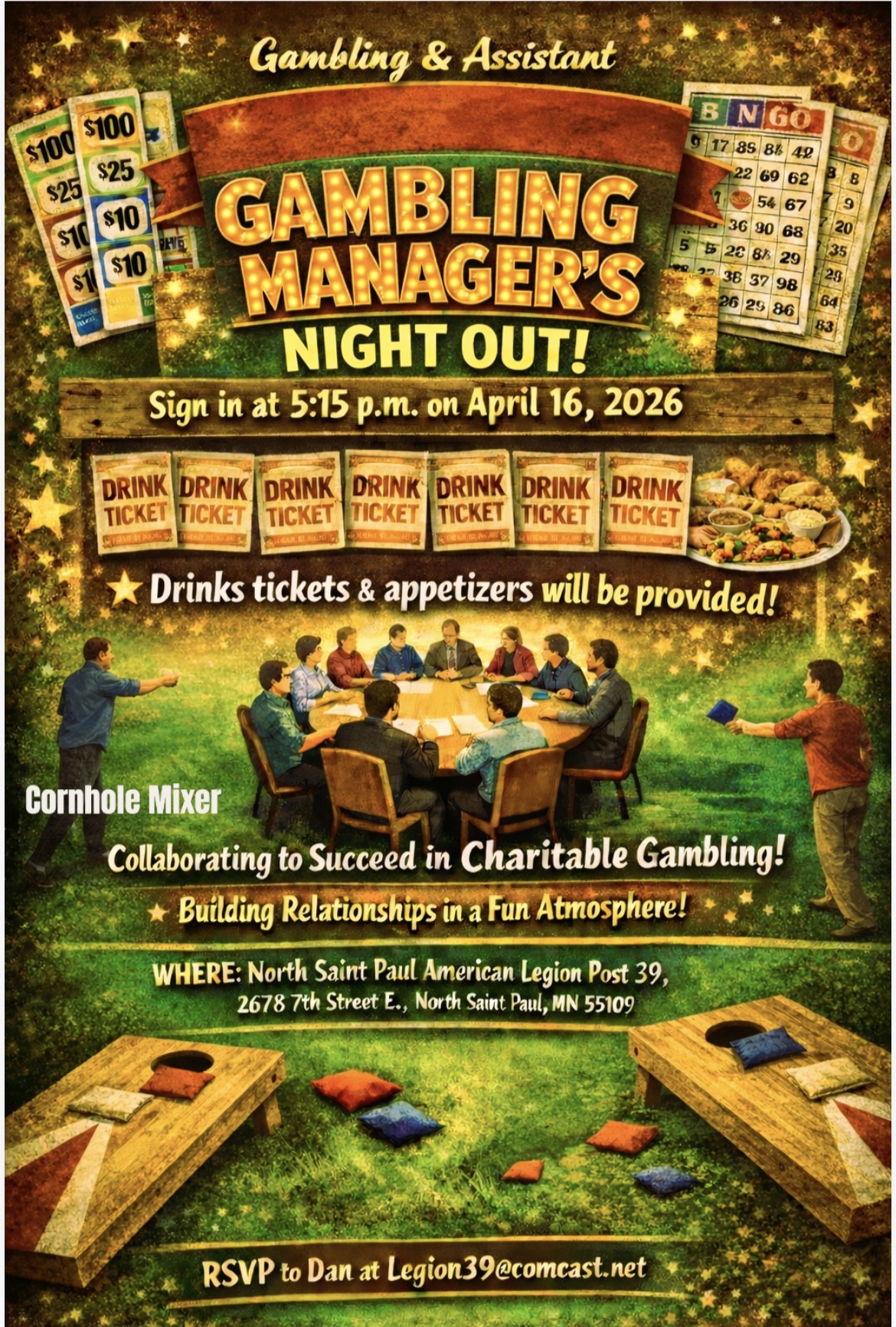 NORTH ST. PAUL —North St. Paul Post 39 is hosting an evening for gambling managers to hang out with gambling managers. This includes assistant gambling managers, too.