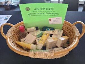 Another aspect of the project is to provide additional toiletries to the VA hospital by collecting travel-size toiletries at the First Lutheran Church in Columbia Heights.