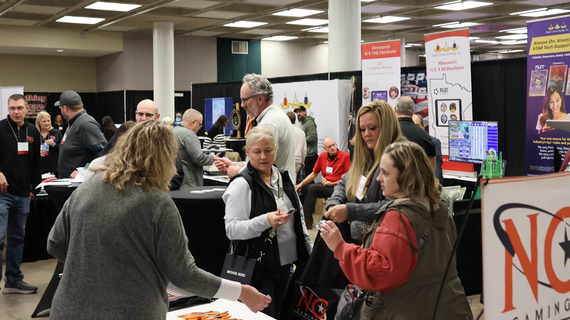 People in the Minnesota charitable gambling industry walk among the vendors in the convention center in Duluth in November 2025.