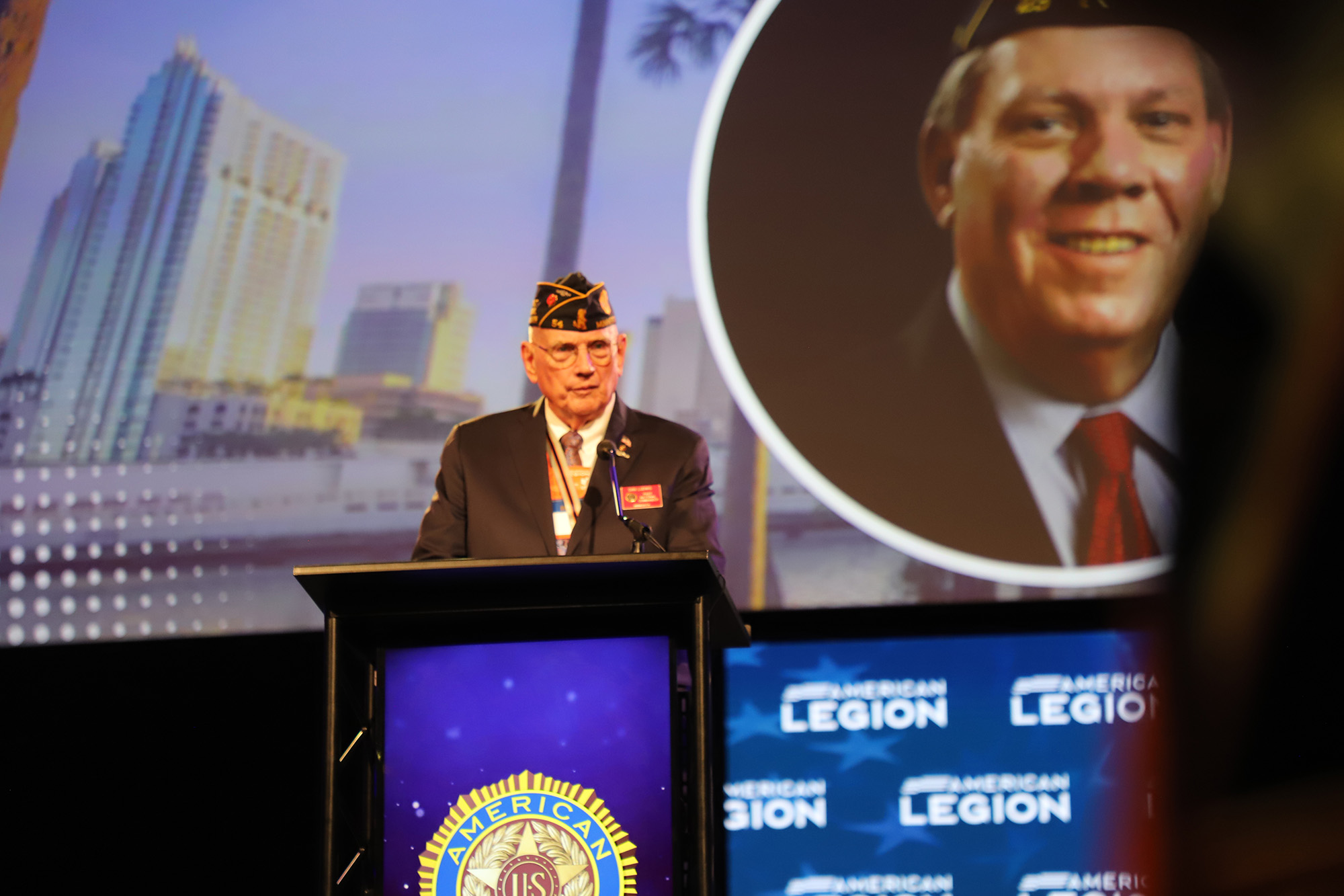 Dan Ludwig, a past national commander from Red Wing Post 54 in Minnesota, took the podium to speak in memory of Past National Commander Miles S. Epling Jr., who died on April 13 at the age of 75.